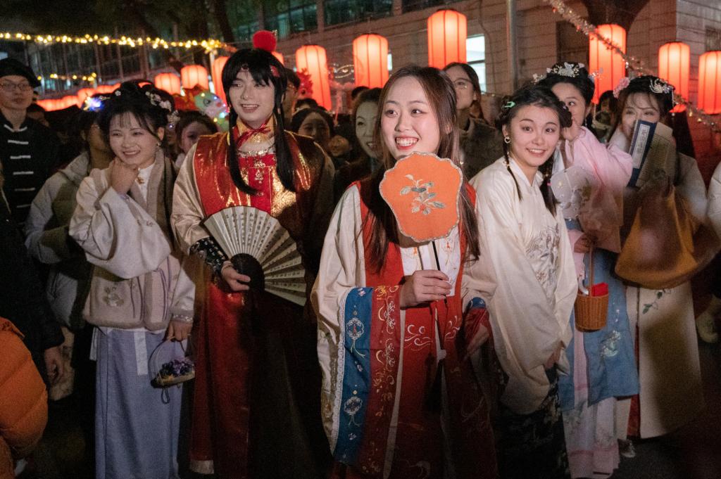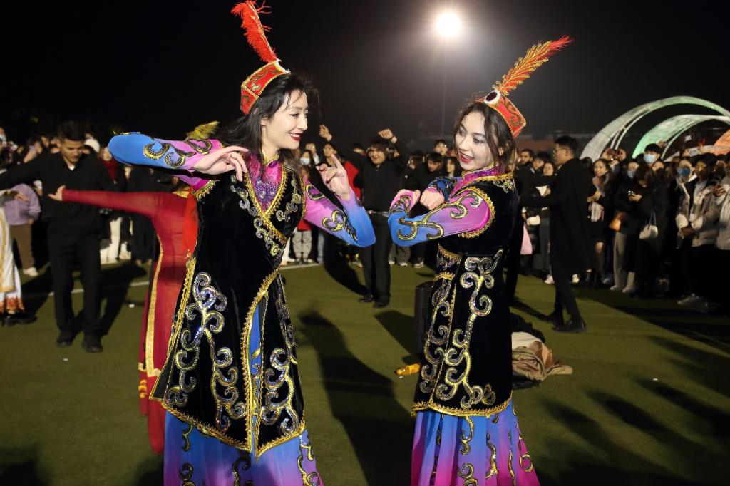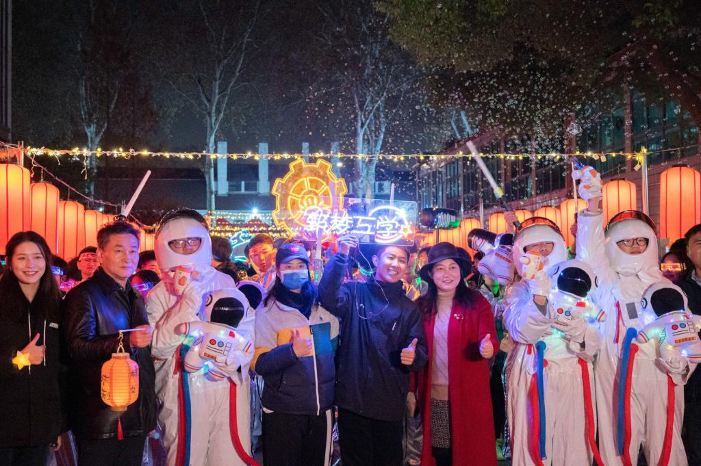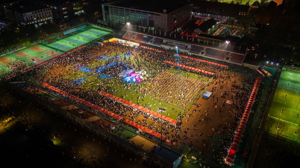31日下午5时许,师生陆陆续续来到东运动场及周边。暖场音乐响起,斑斓灯光点亮,红彤彤的灯笼在微风中荡漾。夜色渐暗,人流汇聚,大家纷纷在主舞台周围合影,留下一张张欢欣的笑靥。