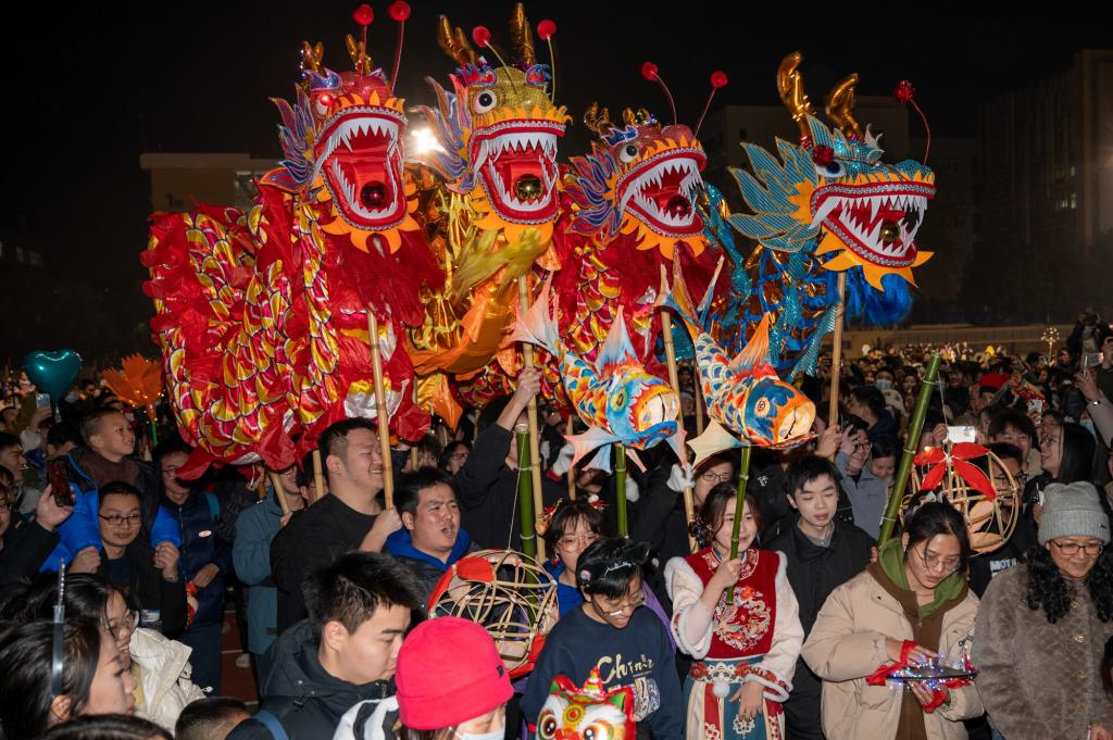 2024年0点,校领导与大家互祝“新年好!好新年!年年好!”(学通社记者 吕旭阳 摄)