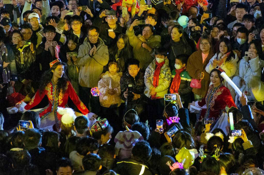 晚8点,27支各具特色的新年巡游队伍,在人群簇拥中载歌载舞,缓缓迈进。