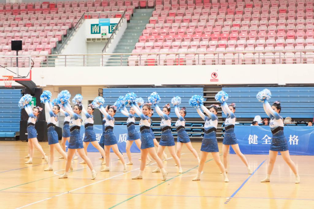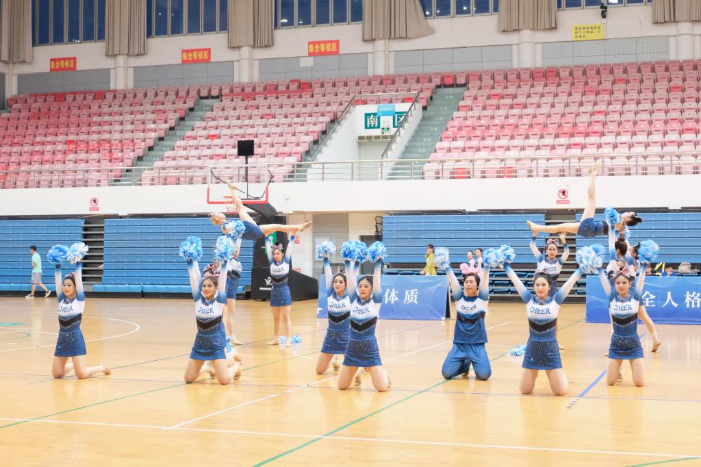 比赛在一段段动感的音乐中拉开帷幕,赢咖第十位登场,啦啦操队员们面带笑容,,用凝练而有力的舞蹈动作,展现出专业技巧和精湛的表演能力。表演过程中,观众席不间断地响起热烈的掌声和欢呼声。他们被队伍的精湛表演所折服,赞叹不已,尽情享受着精彩的舞蹈和动感的音乐。